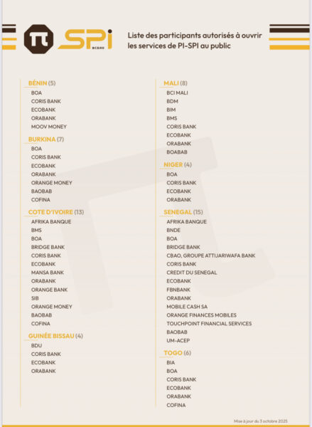 Lancée par la BCEAO pour moderniser les paiements dans l’UEMOA, la PI-SPI permet des transactions instantanées 24h/24 et 7j/7 entre banques, établissements de monnaie électronique et institutions de microfinance agréées.