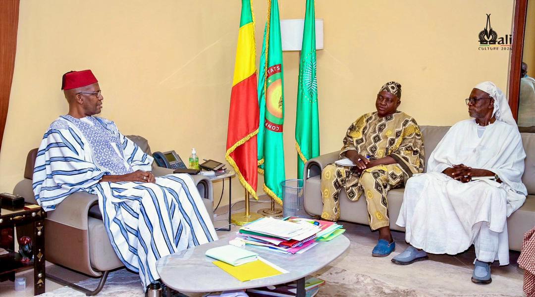 Le bogolan malien franchit une étape décisive dans sa reconnaissance et sa protection. Le jeudi 12 mars 2026, une délégation du groupement Bôgô Danbé, conduite par son président, Souleymane Goro, et accompagnée du Directeur général du Centre de Développement de l’Artisanat Textile (CDAT), Ousmane Coulibaly, a été reçue en audience par le Ministre de l’Artisanat, de la Culture, de l’Industrie hôtelière et du Tourisme, Mamou Daffé.